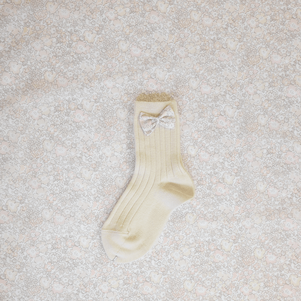 Buttermilk Bow Ankle Socks Liberty Fabric MICHELLE SAND - Coco & Wolf