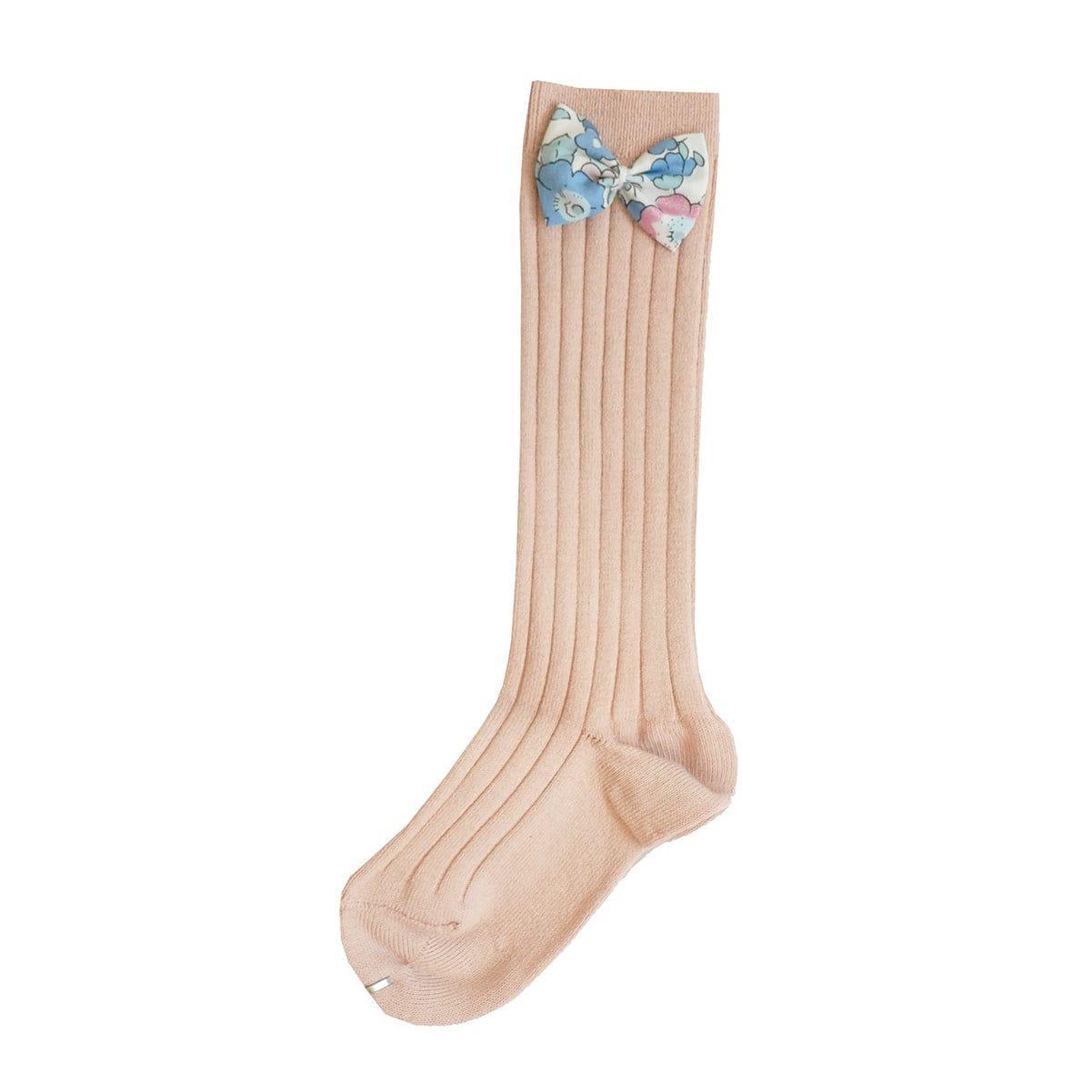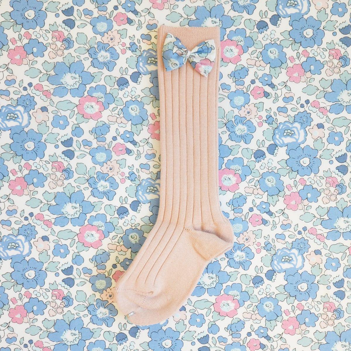 Rose Knee High Socks with Bow made with Liberty Fabric BETSY QUARTZ