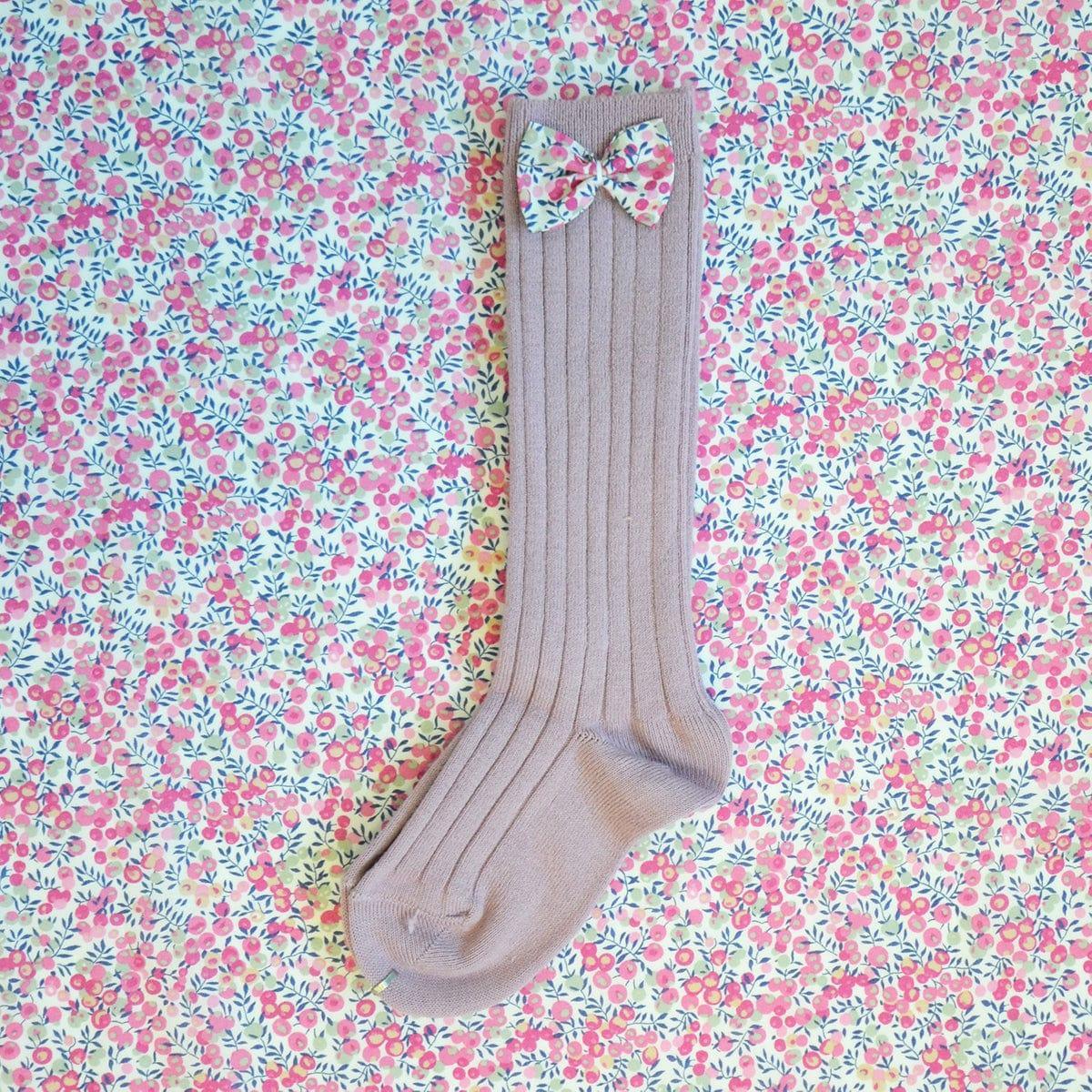 Lavender Knee High Socks with Bow made with Liberty Fabric WILTSHIRE BUD MAGENTA