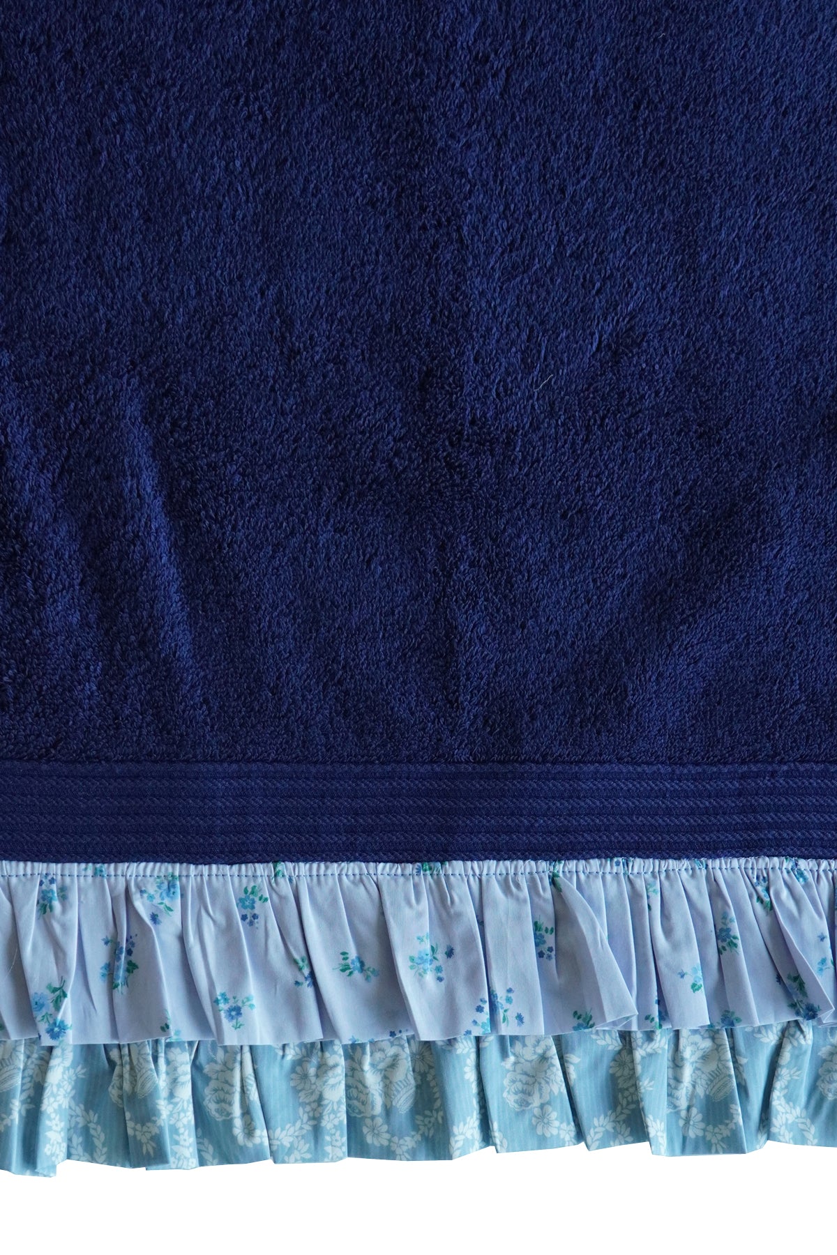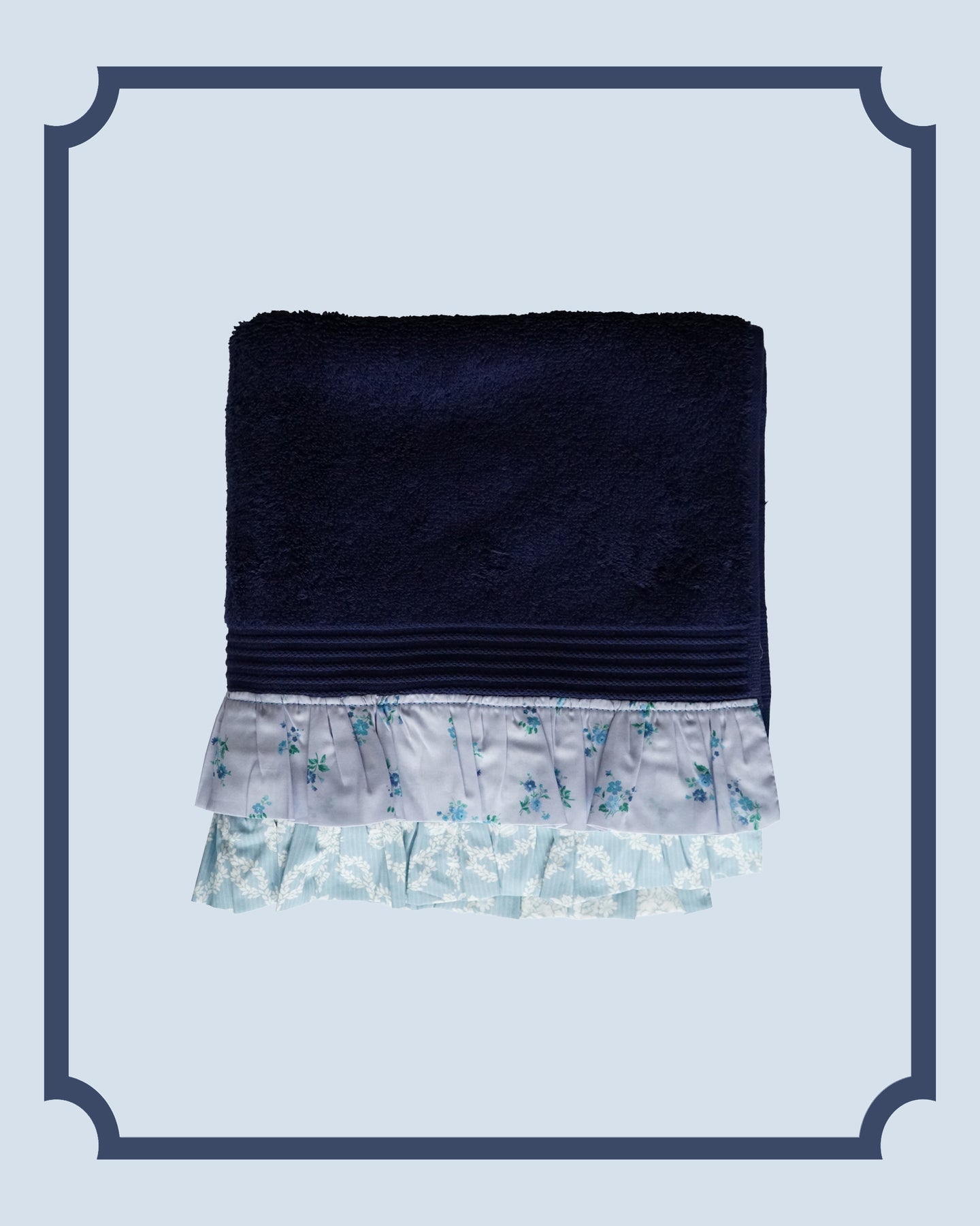 Bridgerton Ruffle-Edge Towel made with Liberty Fabric POSY CORSAGE BLUE & GARLAND HAMPERS