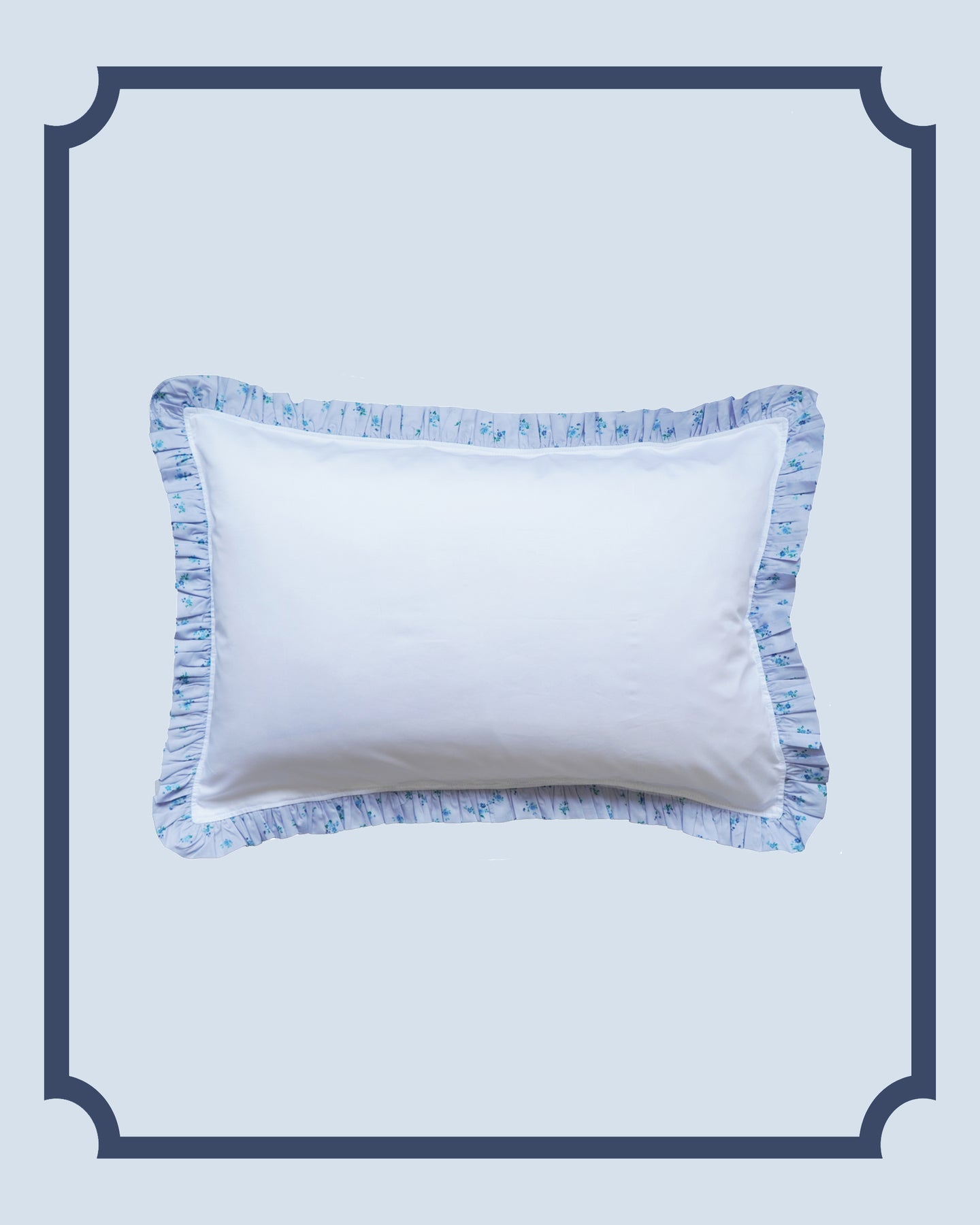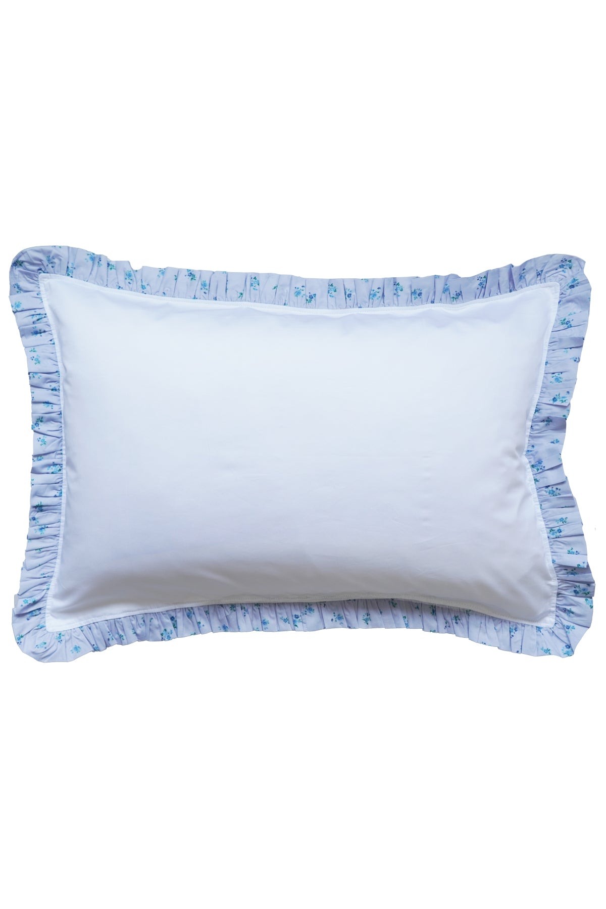 Bridgerton Frill-Edge White Pillowcase made with Liberty Fabric POSEY CORSAGE BLUE
