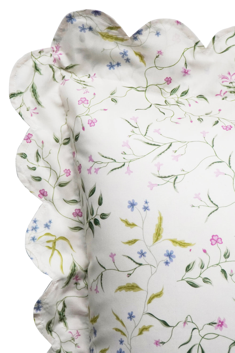 Bridgerton Scallop Edge Pillowcase made with Liberty Fabric REGAL BLOSSOM GREEN